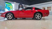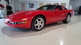 This car is one of 130 finished in Bright Red (81U) for the model year and features a transparent removable roof panel, pop-up headlights, tinted windows, and wider rear quarter panels than the standard Corvette.