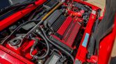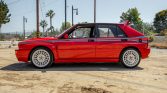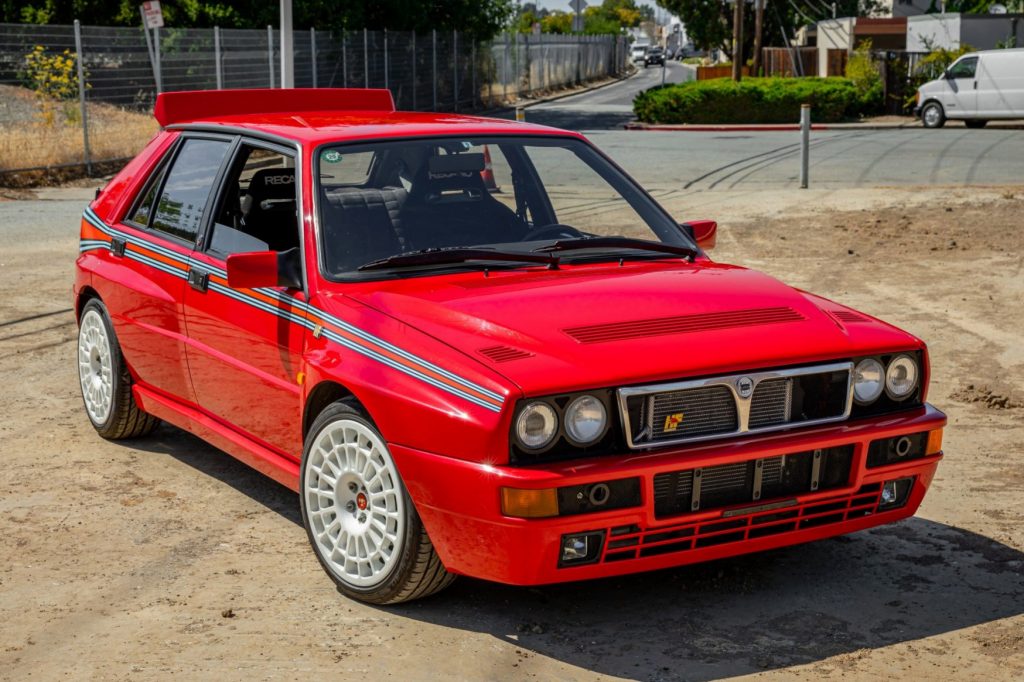 This 1992 Lancia Delta Integrale Evoluzione was acquired in Japan by the owner in 2018 and subsequently imported to the US. The car is finished in Rosso Monza with Martini Racing-inspired stripes over a gray fabric interior and is powered by a rebuilt turbocharged 2.0-liter inline-four that drives all four wheels through a five-speed manual transmission. Features include Evo-specific bodywork, air conditioning, a Continental CD stereo, an upgraded turbo and camshafts, Bilstein shock absorbers, Recaro SR-2 seats, and 17” Speedline wheels.