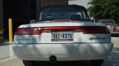 The car is finished in white and features a black soft top with a matching boot along with chrome headlight surrounds, a polished single exhaust outlet, a telescoping antenna, and body-color mirror caps and bumpers.