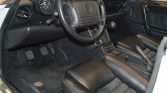 The cabin features seats upholstered in black leather with suedecloth inserts as well as matching carpets protected by Alfa Romeo-branded floor mats. Amenities include air conditioning, power windows, a leather-wrapped shift knob, a locking glovebox, and a Sony cassette stereo.