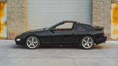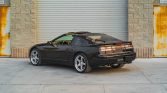 This 1993 Nissan 300ZX is powered by a twin-turbocharged 3.0-liter V6 paired with a five-speed manual transmission and a limited-slip differential and is finished in black over tan leather. Equipment includes removable glass roof panels, a rear spoiler, 18″ NISMO wheels, a power-adjustable driver seat, automatic climate control, and a Bose audio system. Modifications include adjustable suspension, enlarged brake rotors, a short-throw shifter kit, a Pioneer infotainment stereo head unit, and an HKS boost controller. The car…