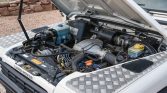 This 1995 Land Rover Defender 90 is one of approximately 500 North American-Specification station wagon examples imported into the US for the model year and is finished in Alpine White over Ash Gray Houndstooth cloth and vinyl. Equipment includes a roll cage, a roof rack, a front brush guard, a pop-up glass sunroof, auxiliary lights, 16″ five-spoke wheels, and tubular side steps along with air conditioning, an AM/FM/cassette stereo, and inward-facing rear jump seats. Power is provided by…