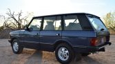 This Land Rover Range Rover Classic County is a long-wheelbase example that was first registered in Canada and subsequently imported to Arizona in 2017 after being acquired by the seller. The truck is finished in Plymouth Blue Metallic over Sorrel Tan Connolly leather, and power is provided by a 4.2-liter V8 mated to a four-speed automatic transmission and a dual-range transfer case. Additional equipment includes mud flaps, 16″ alloy wheels, a receiver hitch, a heated windshield, a powered sunroof, power-adjustable front seats, an AM/FM cassette stereo, air conditioning, and cruise control. Recent service is said to have included replacing the front suspension airbags, radiator, alternator, fuel pump, brake pads and rotors, windshield, and tires.