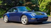 This 1995 Porsche 911 Carrera coupe wears a repaint in Iris Blue Metallic over a Marble Grey, Midnight Blue, and black interior, and it is powered by a 3.6-liter flat-six that has been fitted with a Steve Wong ECU chip. The car was specified with a six-speed manual transaxle and a limited-slip differential, and additional equipment includes an FD Motorsports Golden Rod kit, a lightweight flywheel, 18″ Turbo Twist wheels, M033-specification springs, Koni shocks, Walrod control arm bushings, LED headlights, smoked lighting lenses, and an aftermarket sound system.