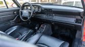 The car is finished in Guards Red (G1) and Euro-spec bumpers and side skirts were fitted and finished under previous ownership. Additional features include integrated front driving lights, black “Carrera” decklid badging, a rear window wiper, and dual exhaust outlets.