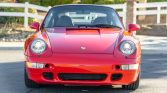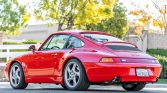 This 1995 Porsche 911 Carrera coupe is powered by a 3.6-liter flat-six paired with a six-speed manual transaxle and a limited-slip differential, and it is finished in Guards Red over black leather. Modifications include a Steve Wong ECU chip, Euro-spec bumpers and side skirts, a Fister muffler, and Bilstein suspension components resulting in a lowered ride height. Alloy 18″ Turbo-Twist alloy wheels are mounted, and additional equipment includes integrated driving lights, power-operated front hardback sport seats, air…