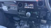 The 16″ steel wheels are mounted with 235/85 Falken Wildpeak A/T3W tires, and a matching spare is located in the bed. A Dobinsons two-inch suspension lift kit with replacement leaf springs, shocks, and anti-inversion shackles was installed under previous ownership according to the seller. The truck is equipped with Aisin manually locking front hubs, the seller notes that an EPAS Performance hydroelectric power steering system was added in 2023. Stopping power is provided by front disc and rear drum brakes, and a dual-diaphragm brake booster is fitted.
