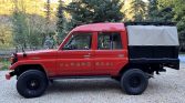 This 1995 Toyota Land Cruiser HZJ75 is a right-hand-drive example that was outfitted for fire service in Japan before it was imported to the US in 2021 and further modified. Finished in red over gray vinyl, the truck has a bed with removable side panels and a tan soft top along with a roof rack, a two-inch suspension lift kit, power steering, and 16″ steel wheels. Power is provided by a 4.2-liter 1HZ diesel inline-six fitted with a…