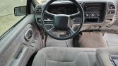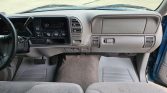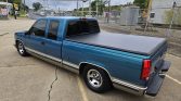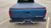 This 1998 Chevrolet C1500 Silverado is an Extended Cab pickup finished in Medium Blue Green and Light Pewter Metallic that has been fitted with a suspension lowering kit, window tint, and a tonneau cover. The truck is powered by a 4.3-liter Vortec V6 linked with a four-speed automatic transmission and a locking differential, and it is equipped with 15″ six-hole wheels, air conditioning, cruise control, a Bluetooth-capable Pioneer head unit, and two rows of bench seating trimmed in gray cloth.