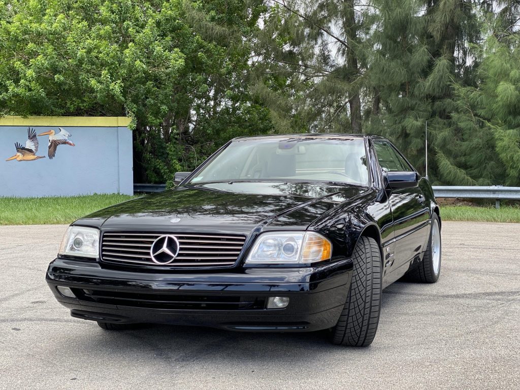 This 1998 Mercedes-Benz SL600 is finished in black over two-tone leather upholstery, and it is powered by a 6.0-liter V12 paired with a five-speed automatic transmission. Equipment includes a black convertible top, xenon headlights, AMG alloy wheels, a self-leveling suspension, automatic climate control, cruise control, power-adjustable seats with position memory, and an AM/FM/cassette stereo. The car resided in Nevada until February 2013, when it was moved to Arizona, and it was acquired by the seller in March…