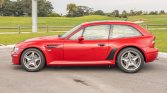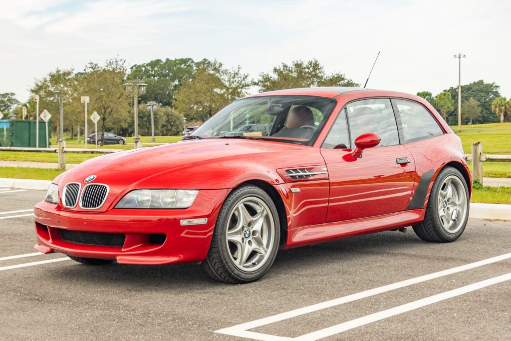 Approximately 2,856 M Coupes were produced for the North American market over a five-year run, and this example is finished in Imola Red II (405). Features include wider fenders than the contemporary Z3, a sunroof, fender vents, side skirts, rear fender guards, and quad exhaust outlets.