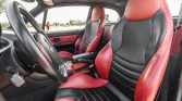 The interior features power-adjustable and heated sport seats trimmed in Imola Red and black Nappa leather, and color-coordinated trim covers the dashboard, center console, and door panels. Amenities include a BMW CD stereo, Harman Kardon audio, air conditioning, a passenger footwell luggage net, console-mounted factory cupholders, and cruise control.