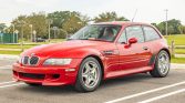 This 2000 BMW M Coupe was first registered in California and remained in the state until it was purchased by the seller in August 2018, and it now has 27k miles. It is finished in red over black and red Nappa leather and is powered by a 3.2-liter S52 inline-six mated to a five-speed manual transmission and a limited-slip differential, and modifications include a Racing Dynamics front strut brace and a Scorpion exhaust system as well as a Dinan cold-air intake, high-flow throttle body, and engine management software. Additional equipment includes staggered 17″ wheels, a sunroof, heated seats, cruise control, and a BMW Business CD stereo and Harman Kardon audio.