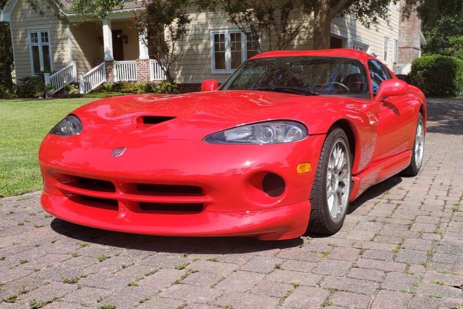 This 2000 Dodge Viper GTS is one of 218 ACR examples produced for the model year, and it is finished in Viper Red over black leather. Power is provided by an 8.0-liter V10 paired with a six-speed manual transmission and a limited-slip differential. Features include a vented hood, 18″ ACR-specific wheels, a racing-style fuel filler door, centrally mounted twin exhaust outlets, a Viper-logo third brake light, air conditioning, an Alpine CD stereo system, ACR-branded seat harnesses, power windows, and power steering. The car has resided in Alabama since new, and it was acquired by the seller in 2002.