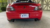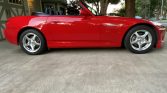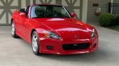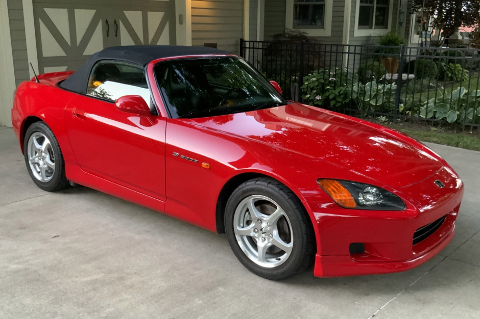This 2000 Honda S2000 was purchased new by the seller from O’Neill Honda of Overland Park, Kansas, and is finished in red over black leather. The car is powered by a 2.0-liter VTEC inline-four paired with a six-speed manual transmission and a limited-slip differential. Additional equipment includes a power-operated black soft top, air conditioning, cruise control, an AM/FM/CD stereo, a Mugen cat-back exhaust system, front and rear spoilers, and 16″ five-spoke wheels.