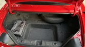 The cockpit features seats upholstered in black leather with perforated center inserts along with a matching dashboard, center console, top boot, door panels, and carpets. The car features a Honda security system, and additional amenities include air conditioning, cruise control, a wind deflector, and a factory AM/FM/CD stereo with a trunk-mounted disc changer. A set of gray floor mats and a separate set of red floor mats accompany the car.