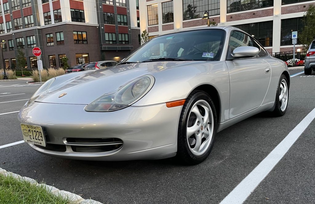 This 2000 Porsche 911 Carrera coupe is finished in Arctic Silver Metallic over black supple leather and is powered by a 3.4-liter flat-six paired with a six-speed manual transaxle. Equipment includes 17″ five-spoke alloy wheels, a sunroof, a deployable rear spoiler, integrated fog lights, automatic climate control, the Hi-Fi Sound Package, a CD changer, and cruise control. An LN Engineering IMS bearing retrofit kit was installed in 2019, and additional service since 2018 included replacement of the tires, brake pads, and rotors.