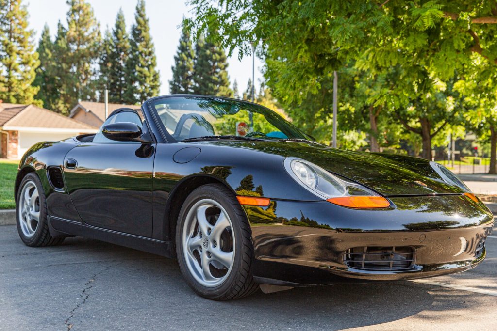 This 2000 Porsche Boxster was initially delivered to Blue Grass Automotive of Louisville, Kentucky, and spent time in Ohio before being acquired by the seller in 2015. The car is finished in black over matching leather and is powered by a 2.7-liter flat-six paired with a five-speed manual transaxle. Equipment includes a power-operated black convertible top, 16″ alloy wheels, automatic climate control, power-adjustable and heated seats, and a factory CD stereo.