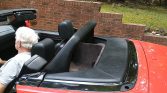 The car is finished in Magma Red (586) and features a matching removable hardtop as well as a black soft…