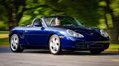 This 2001 Porsche Boxster S is finished in Lapis Blue Metallic over Graphite Grey full leather and is powered by a 3.2-liter flat-six paired with a six-speed manual transaxle. Features include the Sport Package, a Metropol Blue soft top, 18″ Turbo-look wheels, a deployable rear spoiler, xenon headlights, cruise control, and an Alpine touchscreen stereo with a rearview camera.