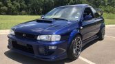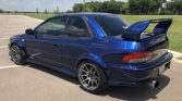 This 2001 Subaru Impreza 2.5RS is a modified example that is powered by a replacement 2.0-liter EJ20 flat-four fitted with a VF48 turbocharger, a Mishimoto top-mount intercooler, Cobb Accessport flash tuner, Grimmspeed electronic boost controller, and a Crawford Gymkhana catback exhaust system. Power is sent to all four wheels through a five-speed manual transmission equipped with an ACT clutch and flywheel. The car is finished in blue with body-colored fender flares, a JDM-style rear bumper, and a…