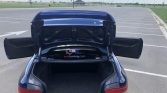 The cabin houses dual Sparco Torino 2 seats trimmed in black fabric and vinyl. 2.5RS-branded mats line the floors, and amenities include an aftermarket keyless entry and alarm system, air conditioning, an electric sunroof, power windows, and a Pioneer head unit equipped with a DVD player and Bluetooth connectivity and wired to JL Audio speakers, including 8″ subwoofers in the door panels. A Cobb Accessport flash tuner is mounted to the driver’s left, and reportedly contains maps for both 93 octane and E85 Ethanol.