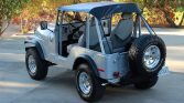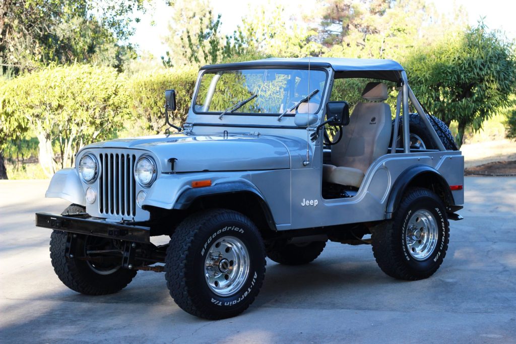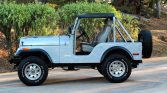 This 1975 Jeep CJ-5 was acquired by the seller in 2002 and subsequently received a body-off refurbishment with a repaint in its current gray finish. The truck is powered by a 232ci inline-six linked with a three-speed manual transmission, a Dana 20 dual-range transfer case, a Dana 30 front axle with Warn locking hubs, and a Dana 44 rear axle with a limited-slip differential. Additional equipment includes 15″ aluminum wheels, a black vinyl bikini top, Bestop heated bucket seats, and a hidden AM/FM/CD stereo with overhead speakers. Recent service is said to have included rebuilding the carburetor and changing the oil.