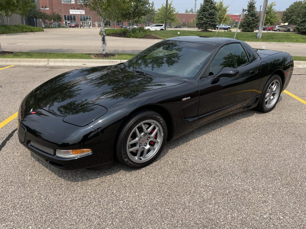 This 2002 Chevrolet Corvette Z06 was first registered in New York where it remained with its original owner until May 2021 when it was acquired by the seller and relocated to Minnesota. The car is finished in black over black leather and is powered by a 5.7-liter LS6 V8 mated to a six-speed manual transaxle and a limited-slip differential. Equipment includes 17″ and 18″ aluminum wheels, brake cooling ducts, dual-zone automatic climate control, and a Bose audio system.