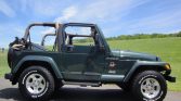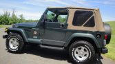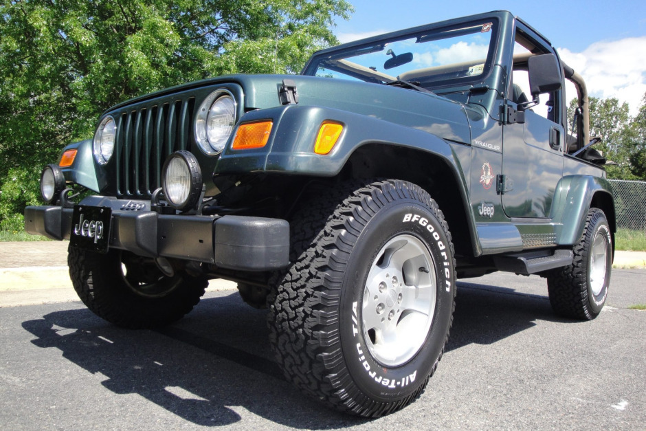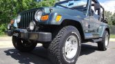 This 2002 Jeep Wrangler Sahara is finished in Shale Green over a green and beige interior and is powered by a 4.0-liter inline-six linked with a five-speed manual transmission and a dual-range transfer case. Additional equipment includes a Dana 44 rear axle with an anti-spin differential, a receiver hitch, air conditioning, cruise control, an AM/FM/CD stereo, and full-frame metal doors.