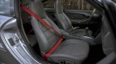 The 18″ Turbo Twist wheels are wrapped in Michelin Pilot Sports N3 tires showing 2017 date codes and measuring 225/40 up front and 295/30 out back. The suspension has been modified with Bilstein PSS10 coilovers, and the car is equipped with Porsche Stability Management (PSM) and an automatic brake differential. Braking is from red calipers over vented and cross-drilled rotors at all four corners.