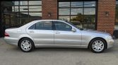 This 2003 Mercedes-Benz S500 is finished in silver over black Nappa leather, and it is powered by a 5.0-liter V8 paired with a five-speed automatic transmission. Equipment includes bi-xenon headlights, a sunroof, 17″ alloy wheels, heated and power-adjustable front seats, dual-zone automatic climate control, cruise control, COMAND infotainment with navigation, a rear-window roller blind, and a CD changer.