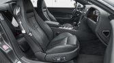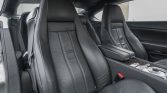 The cabin is upholstered in black leather with a matching dash, door panels, and carpets. Wood veneers accent the dash and center console, and additional amenities include a dash-mounted Breitling clock, navigation, dual-zone automatic climate control, cruise control, and power-adjustable heated front seats with position memory.