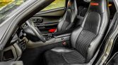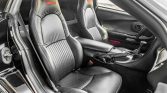 The cabin features seating surfaces upholstered in black leather with red embroidered Z06 logos on the front headrests along with a matching dashboard, carpeting, and door panels. Amenities include a head-up display, dual-zone automatic climate control, a power-adjustable driver’s seat with position memory, a factory CD stereo with a Bose sound system, and Z06-branded floor mats.