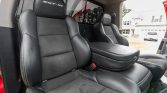 The cabin features seating upholstered in black leather with synthetic suede inserts, silver contrast stitching, and SRT-10 embroidery in the headrests. Amenities include a power-adjustable driver’s seat, air conditioning, push-button start, cruise control, metal pedal covers, a Hurst shifter, and a Kenwood CD stereo linked to an Infinity sound system. The removed factory stereo is included in the sale.
