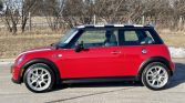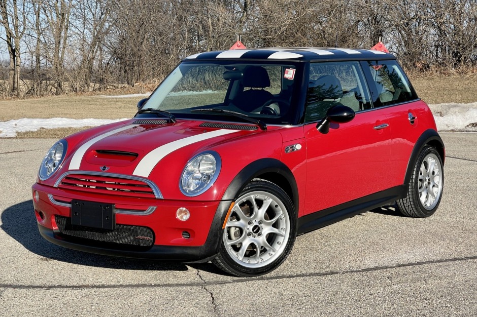 This 2004 Mini Cooper S is finished in Chili Red over two-tone black and gray cloth and is powered by a supercharged 1.6-liter inline-four paired with a six-speed manual transaxle. The car is equipped with the John Cooper Works Tuning Kit that features a revised cylinder head, exhaust system, and ECU tune. Additional equipment includes 17″ wheels, a Promini front strut tower brace, a sport suspension, air conditioning, and an AM/FM/CD stereo.