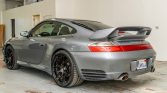 This 2004 Porsche 911 Carrera 4S coupe is finished in Seal Grey Metallic over black full leather upholstery and powered by a 3.6-liter flat-six mated to a six-speed manual transaxle and all-wheel drive. Equipment includes Porsche Stability Management, automatic climate control, a GT2-style rear spoiler, xenon headlights, aftermarket 19″ wheels, heated and power-adjustable front seats, and a Kenwood touchscreen stereo hooked to a Bose high-end sound system.