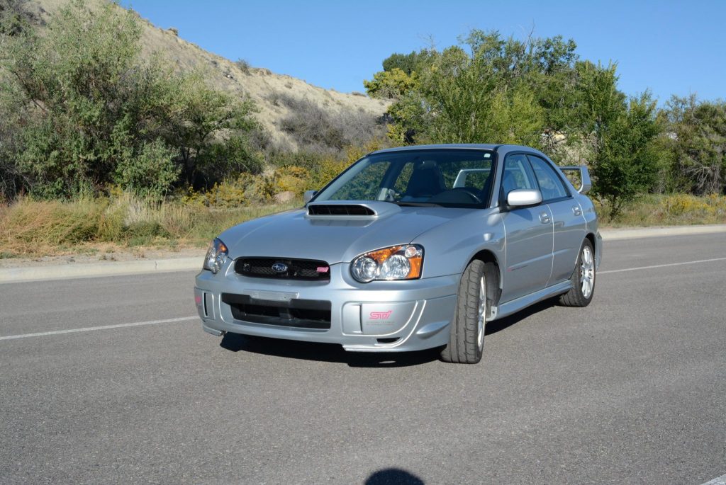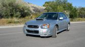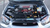 This 2004 Subaru Impreza WRX STi is finished in silver over black and blue cloth upholstery and is powered by a turbocharged 2.5-liter flat-four that drives all four wheels through a six-speed manual transmission. Equipment includes a Driver-Controlled Center Differential, an intercooler water sprayer, semi-automatic climate control, front and rear limited-slip differentials, an STi-specific aero kit, HID headlights, 17″ BBS wheels, and Brembo brakes. Modifications consists of a Cobb turbo-back exhaust system, upgraded sway bars, strut tower…