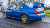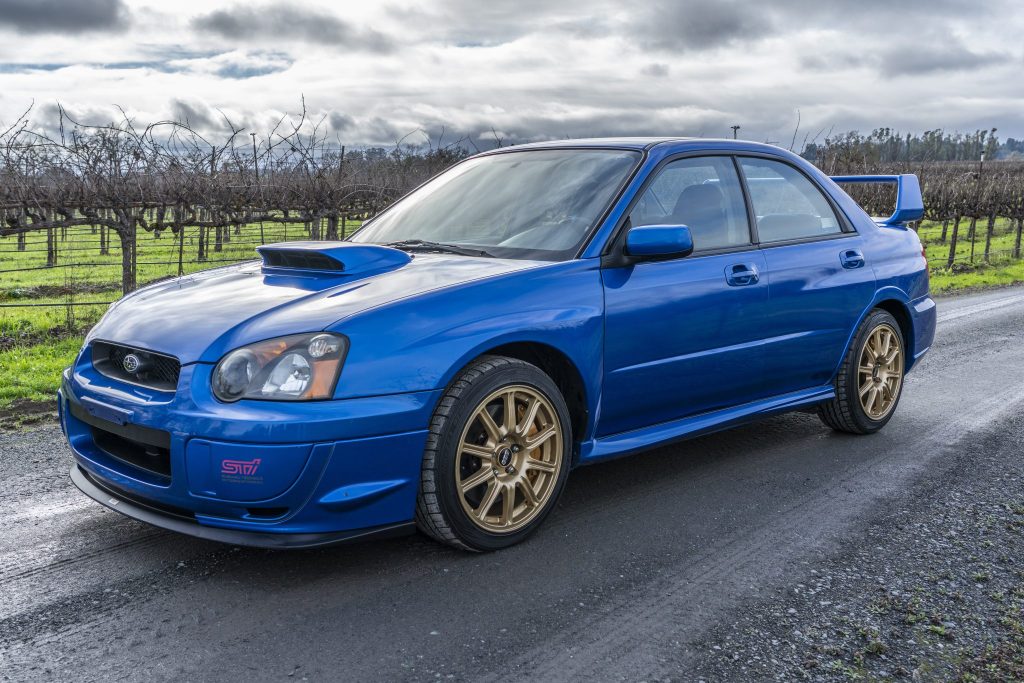 This 2005 Subaru Impreza WRX STi was purchased new by its current owner at Downtown Subaru of Oakland, California, and it now has 50k miles. The car is finished in World Rally Blue Pearl over two-tone cloth and powered by a turbocharged 2.5-liter flat-four that drives all four wheels through a six-speed manual transaxle. Equipment includes a Driver-Controlled Center Differential, front and rear limited-slip differentials, Brembo brake calipers, gold-painted and forged 17″ BBS wheels, a rear wing, automatic climate control, and a CD stereo.