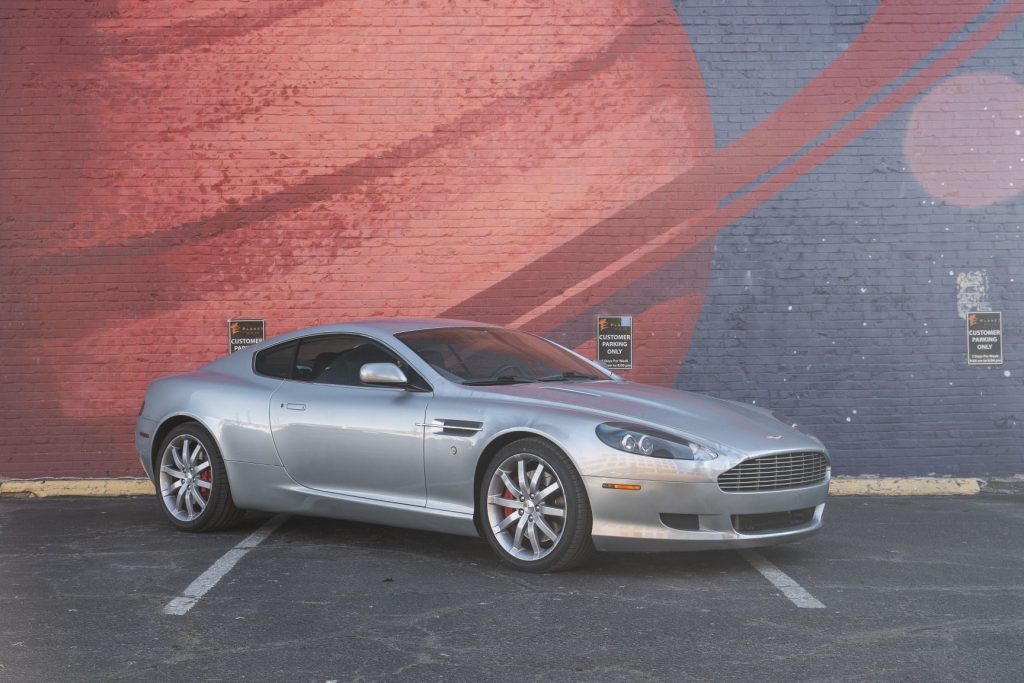 This 2006 Aston Martin DB9 is finished in Titanium Silver over black leather and powered by a 5.9-liter DOHC V12 mated to a paddle-shifted six-speed automatic transaxle with a limited-slip differential. Additional equipment includes 19″ alloy wheels, xenon headlights, rear parking sensors, power-adjustable front seats, navigation, automatic climate control, keyless entry, and cruise control.