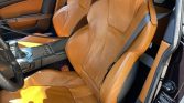 The interior features power-adjustable heated seats upholstered in Kestrel Tan joined by matching door and side panel inserts along with an Obsidian Black dashboard, center console, and carpets. Amenities include automatic climate control, cruise control, navigation, a premium audio system with an in-dash CD changer, an analog clock, an umbrella in the rear cargo area, and an aftermarket accelerator pedal.