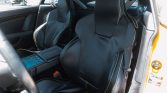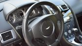 Sports Pack-style 19″ five-spoke lightweight forged aluminum wheels are mounted with Michelin Pilot Sport 4S tires. Tire pressure monitor sensors are not present. Braking is from Aston Martin-branded black calipers over slotted rotors at all four corners. Sports Pack-style suspension components such as Bilstein dampers and other parts including replacement springs, front lower control arms, and a rear anti-sway bar were installed in July 2019. Aftermarket brake pads without wear sensors were replaced in October 2017, while the power steering fluid was changed in May 2023. The removed factory 19″ seven-spoke alloy wheels with tire pressure monitor sensors are said to be included in the sale.