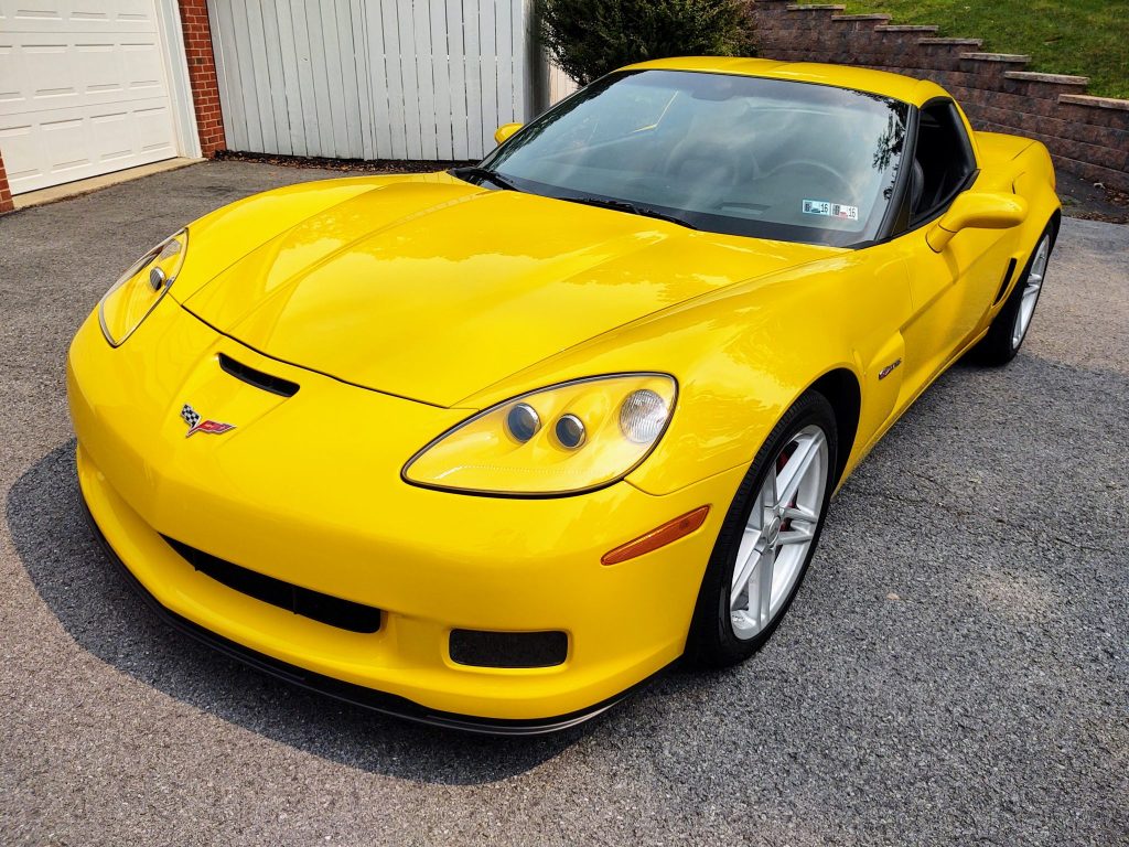 This 2006 Chevrolet Corvette Z06 was registered with a single owner in Pennsylvania prior to the seller’s acquisition in June 2021. The car is finished in Velocity Yellow over Ebony leather and powered by a 7.0-liter V8 paired with a six-speed manual transaxle and a limited-slip differential. Equipment includes xenon headlights, staggered-diameter 10-spoke wheels, a head-up display, dual-zone automatic climate control, and a Corsa axle-back exhaust system.