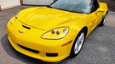 The car is finished in Velocity Yellow (45U) and features Z06-specific carbon fiber fenders with enlarged vents as well as integrated air inlets in the nose and quarter panels. Additional equipment includes xenon headlights, integrated fog lamps, and polished quad exhaust outlets.