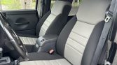 The heated high-back front bucket seats and fold-and-tumble rear bench are covered with Wet Okole black and gray seat covers. BedRug-style carpets line the floors, and additional appointments include a roll bar, a Uniden CB radio, air conditioning, cruise control, crank windows, all-weather floor mats, and a Bluetooth-capable Pioneer CD stereo linked to a Kicker amplifier, subwoofer, and speakers.