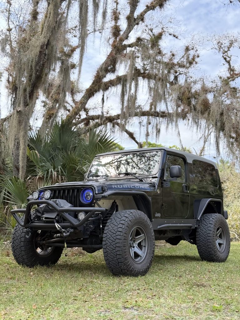 This 2006 Jeep Wrangler Unlimited Rubicon is powered by a 4.0-liter inline-six linked with a four-speed automatic transmission, a dual-range Rock-Trac transfer case, Dana 44 front and rear axles, and Tru-Lok remote-locking differentials. Finished in Brilliant Black over black and gray upholstery, the truck is equipped with a removable gray and black hardtop, a 4.5″ suspension lift kit, a Fox steering stabilizer, Bilstein shocks, four-wheel disc brakes, 17″ alloy wheels, a Smittybilt winch and bumpers, LED lighting, tubular steel fenders, full metal doors, a roll bar, a CB radio, air conditioning, and a Pioneer CD stereo linked to a custom sound system.