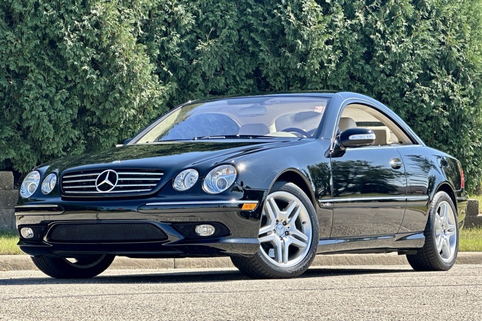 This 2006 Mercedes-Benz CL600 coupe is powered by a twin-turbocharged 5.5-liter V12 paired with a five-speed automatic transmission and is finished in black over Stone Exclusive leather upholstery. Features include bi-xenon headlights, a sunroof, 18″ AMG alloy wheels, a power rear-window sunshade, Keyless Go, an electronic trunk closer, heated and ventilated dynamic front seats, dual-zone automatic climate control, a Bose surround sound system, a trunk-mounted CD changer, and COMAND infotainment with navigation.