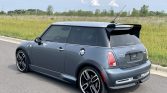 This 2006 Mini Cooper S John Cooper Works GP is one of 2,000 examples produced during a single-year production run and was delivered new to Mini of Saint Louis, Missouri. The car is finished Thunder Blue Metallic over two-tone black and gray and is powered by a supercharged 1.6-liter inline-four mated to a six-speed manual transaxle with a limited-slip differential. Equipment includes an aerodynamic body kit with a carbon-fiber rear wing, a sport exhaust system, 18″ wheels, heated seats, air conditioning, an Alpine stereo, and a rear strut-tower brace. The car was acquired by the seller in June 2021, and servicing in the past year is said to have included replacing the power steering pump, spark plugs, and tires.
