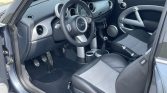 The cabin features heated sport seats upholstered in black leather with red stitching and Checkmate cloth inserts. The GP model featured a chassis brace in place of the rear seat, and additional equipment includes air conditioning, cruise control, and an Alpine stereo.
