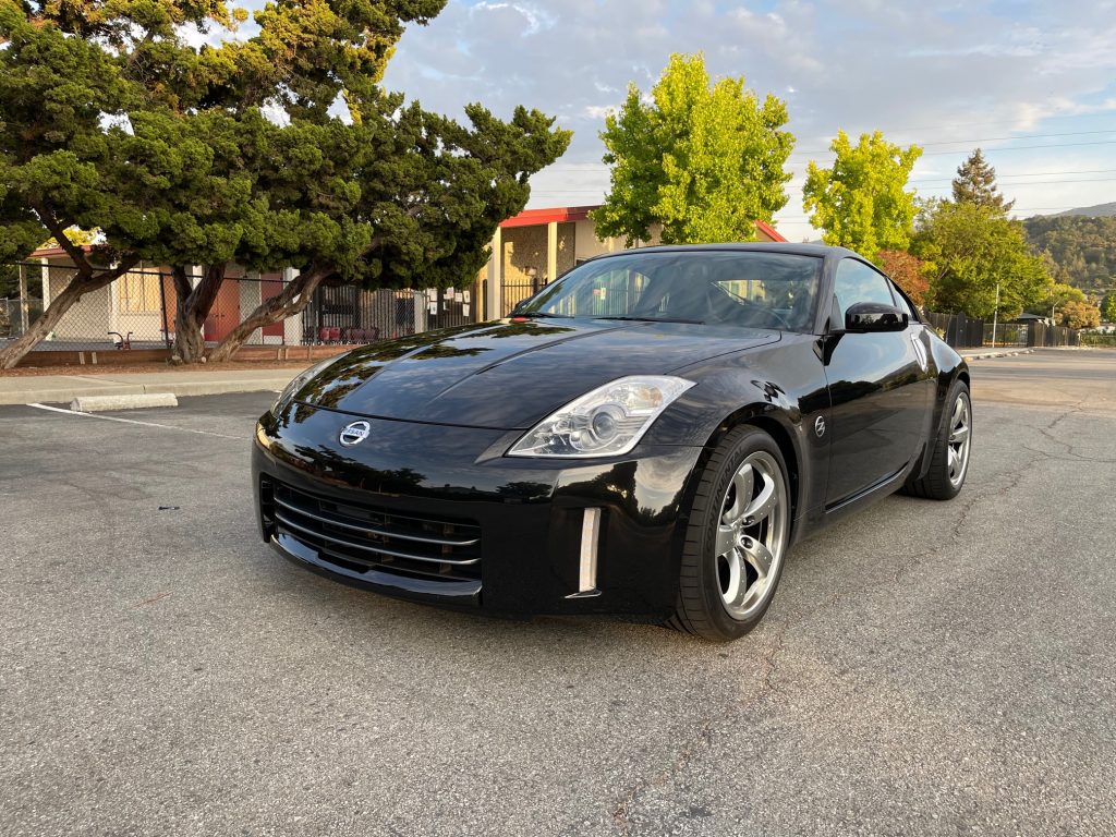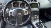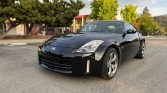 This 2006 Nissan 350Z Grand Touring is finished in black over matching leather, and it is powered by a 3.5-liter V6 paired with a six-speed manual transmission. Equipment includes xenon headlights, 18″ and 19″ Rays Engineering forged alloy wheels, H&R wheel spacers, Brembo brakes with StopTech pads and rotors, a rear spoiler, heated seats, automatic climate control, factory navigation, and an aftermarket Pioneer touchscreen head unit with Apple CarPlay, navigation, and Bluetooth connectivity. The car was first…