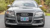 This 2007 Audi RS4 was purchased new by the seller’s parents from Carrera Motors of Bend, Oregon, and now has 9k miles. The car is finished in Daytona Gray over black leather and powered by a 4.2-liter V8 paired with a six-speed manual transmission and a Quattro all-wheel-drive system. Additional equipment includes a sunroof, 19″ wheels, heated seats, dual-zone automatic climate control, carbon fiber interior trim, navigation, rear sunshades, and a Bose sound system.